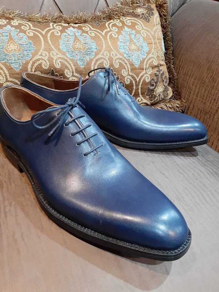 Men's Handmade Whole Cut Shoes Blue Genuine and 50 similar items