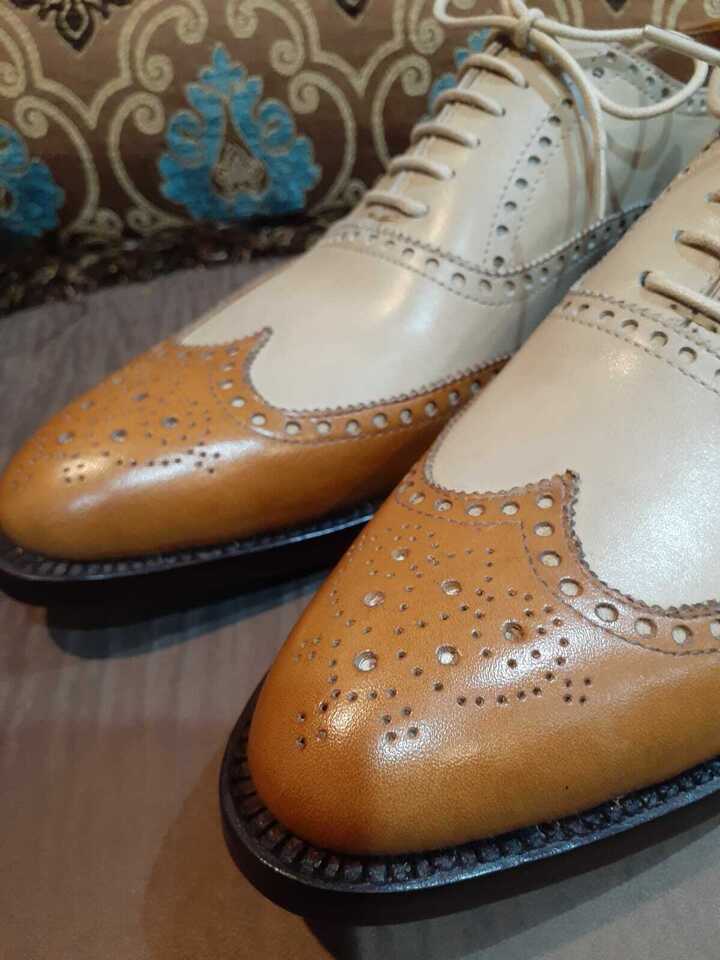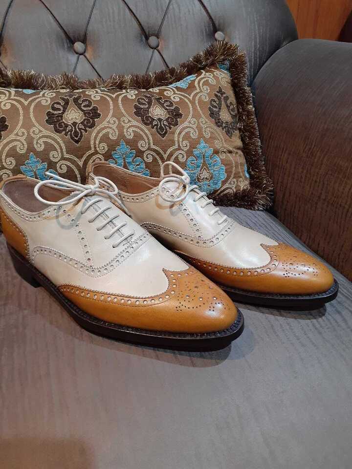 One Pair of New Handmade Men's White and Tan Shoes, Spectator Shoes For Men Dress Shoes
