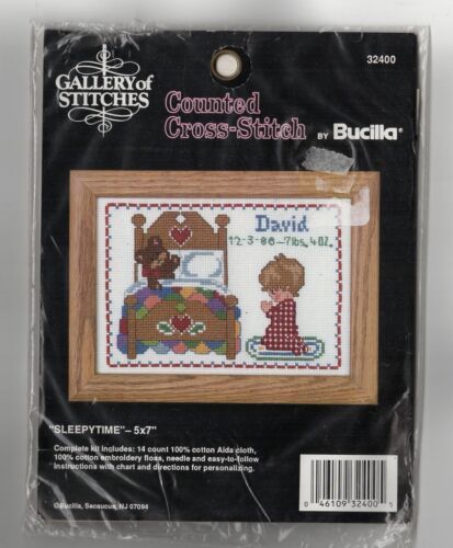 Vintage Bucilla Counted Cross Stitch Kit Sleepytime Birth Announcement Boy