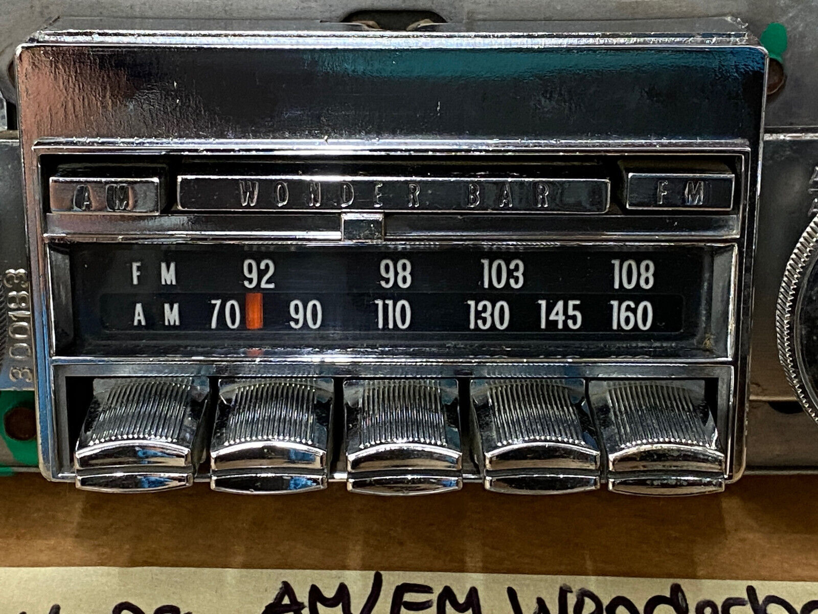 This radio is untested, so being sold as-is for parts or refurbish. Chrome has a nice reflective shine, no heavy pitting. Face plate is nice and clear and glass is intact. Knobs move smoothly and tuner knob changes the station. The push buttons all function to change the preset station. The top push buttons for AM/FM Wonder Bar seem stuck, but may free up with some lubrication or tear down for refurbish. Please look at all pictures as they are part of the description.