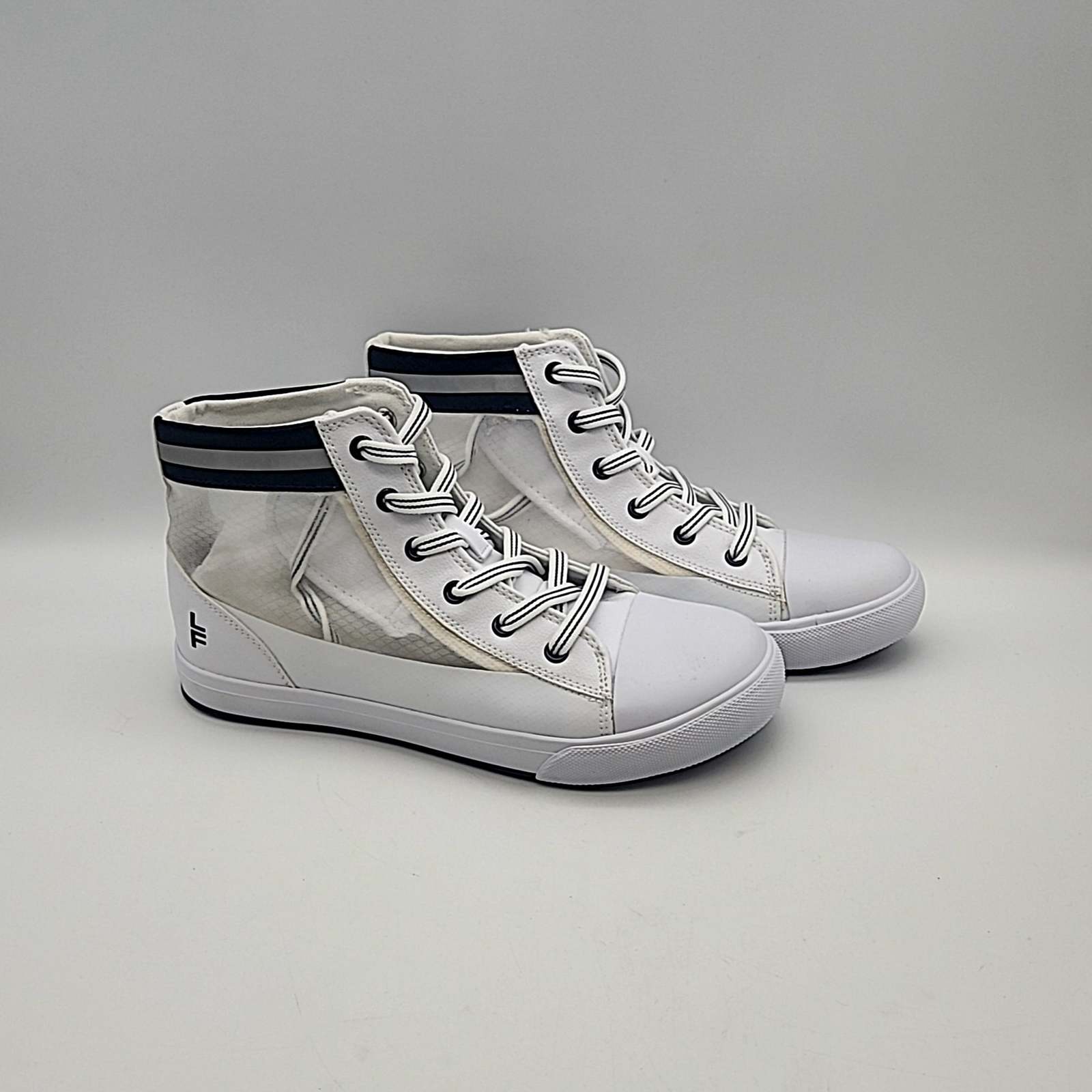 Beautiful high-top sneakers by London Fog. Features breathable mesh lining on sides. Stylish navy and white color scheme. Size 4M