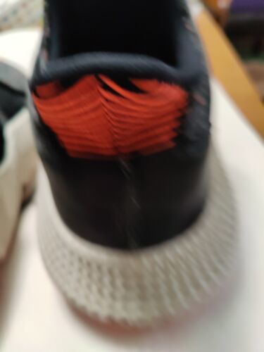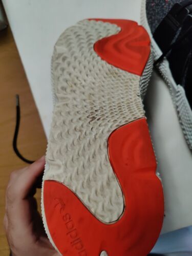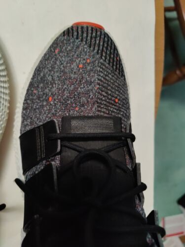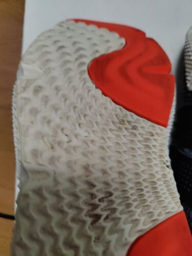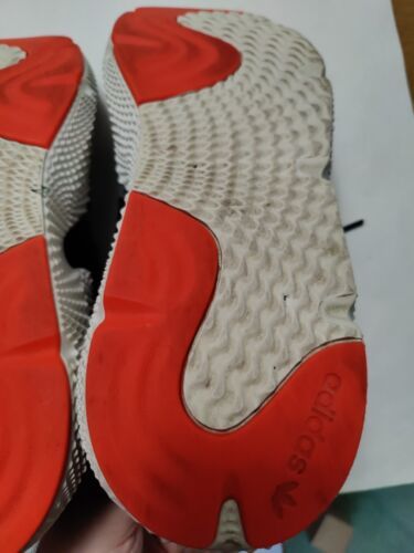 Fairly clean really nice pair of Adidas sneakers. Honestly, I would have kept them for myself if they were my size. I like the design of this shoe. This shoe has orange, grey, black, white, and red.