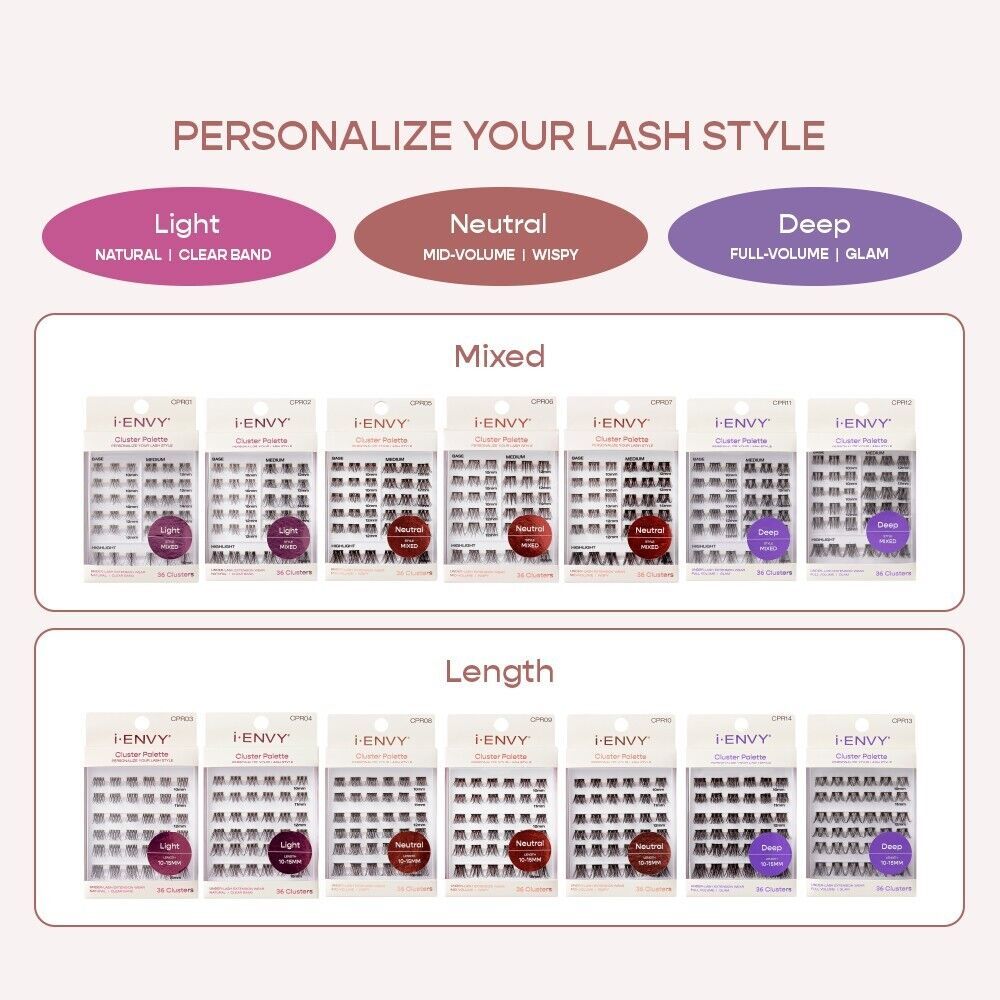 I ENVY 36 CLUSTER PALETTE WISPY STYLE:MIXED UNDER-LASH EXTENSIONS #CPR07