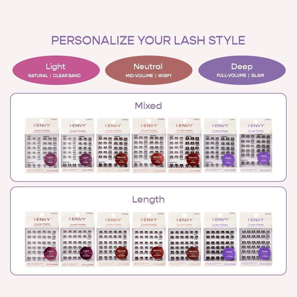I ENVY 36 CLUSTER PALETTE GLAM DEEP STYLE: MIXED UNDER-LASH EXTENSIONS #CPR12