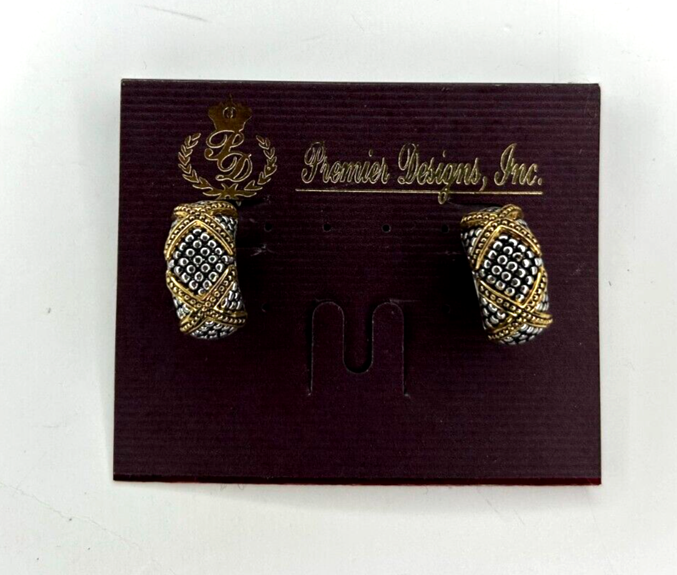 Premier Designs Classy Criss Cross Pierced/Clip On Earrings Silver/Gold Tone NEW