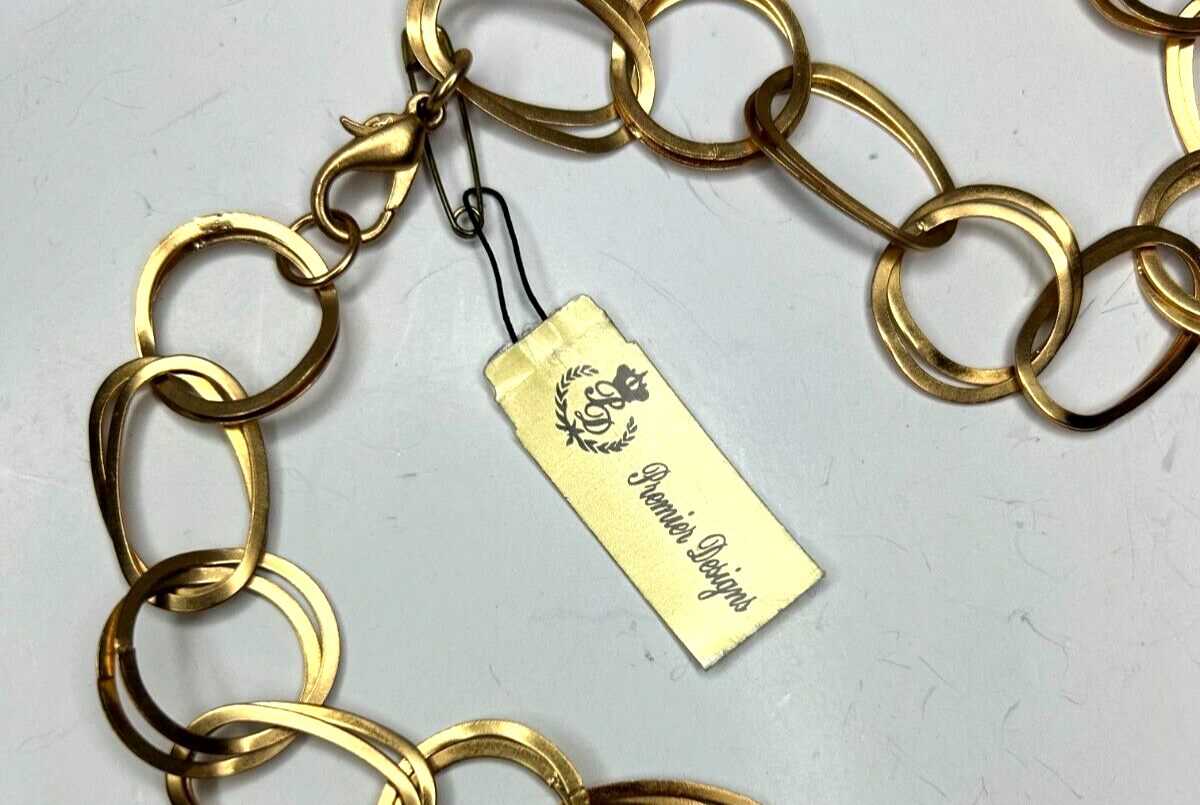 Premier Designs SOPHIA GOLD-plated Hoop Chain Oversized 30" Long Necklace - NEW