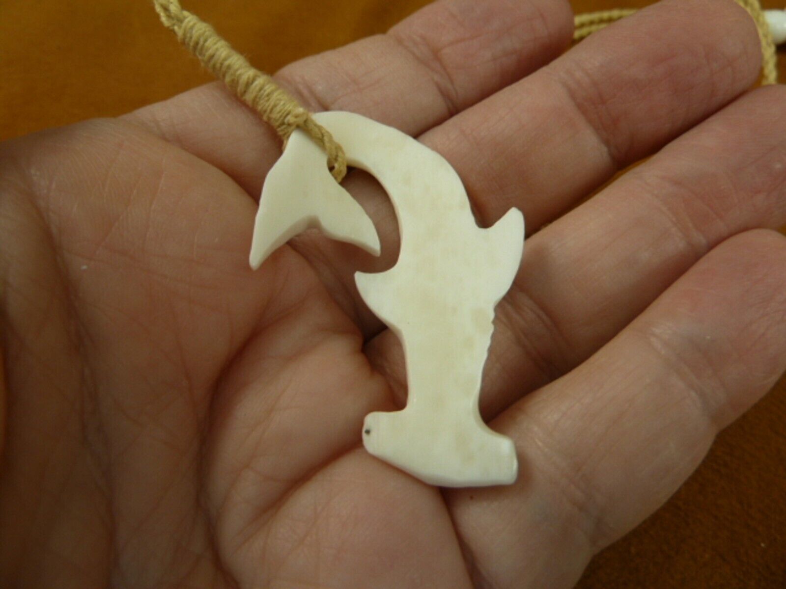 (Internal #J-SHARK-7) You are bidding on a beautifully hand made jumping HAMMERHEAD SHARK folded in half pendant made of natural Water buffalo water buffalo organic material, measures 2? long x 1-3/8? wide x 3/16? thick; smooth flat or concave (not made) on back; superb detail; comes on a 34" braided natural cotton cord necklace with sliding knot bead closure that can be adjusted to any length smaller.