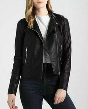 Biker Stylish Black Real Soft Lambskin Leather Motorcycle Style Women's Jacket/ us