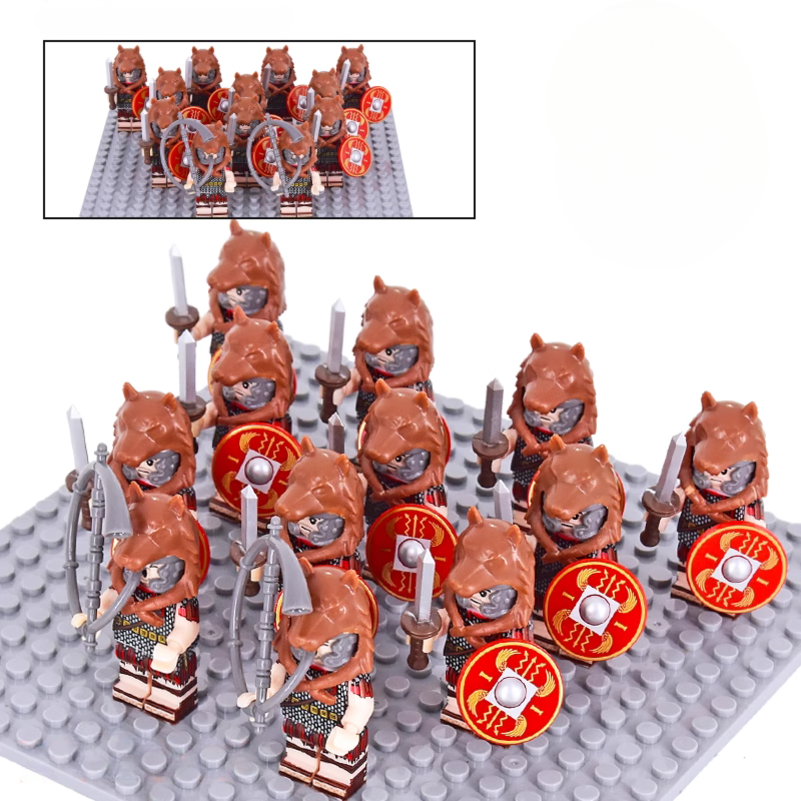 12pcs Roman Auxiliary Legion Wolf Skin Signifier Minifigures Building Toys