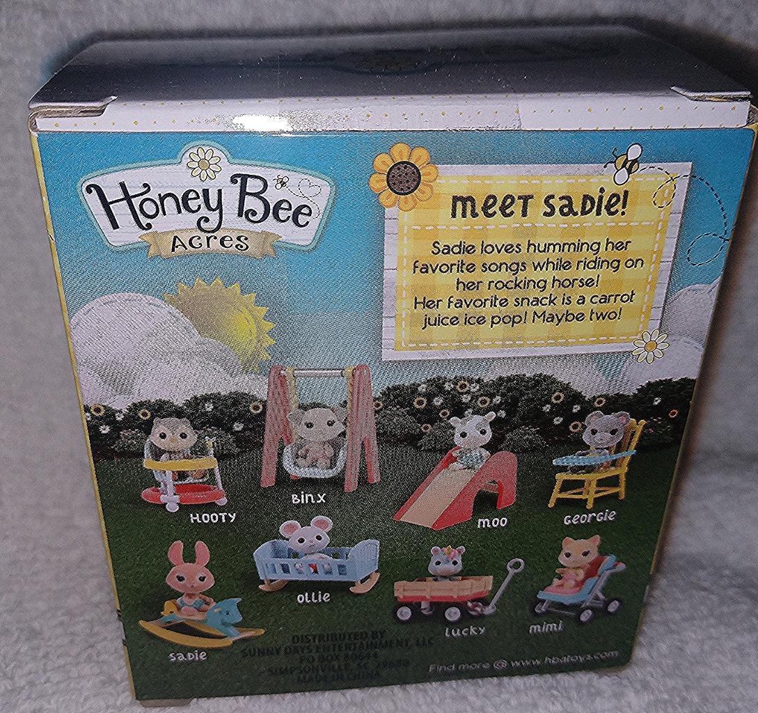 New in package. For ages 3 years old and up. Welcome to the world of Honey Bee Acres. Sadie is approx. 2"H. Comes from a smoke- free home. We combine shipping with most of our other items, message me before you purchase. Thank you for stopping by~!~!~