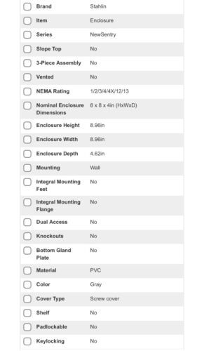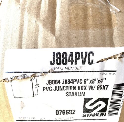 J884PVC Non Metallic Junction Box Enclosure 8"x8"x4" W/Gasket Water Dust Tight