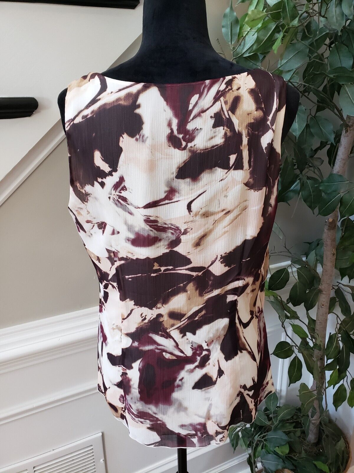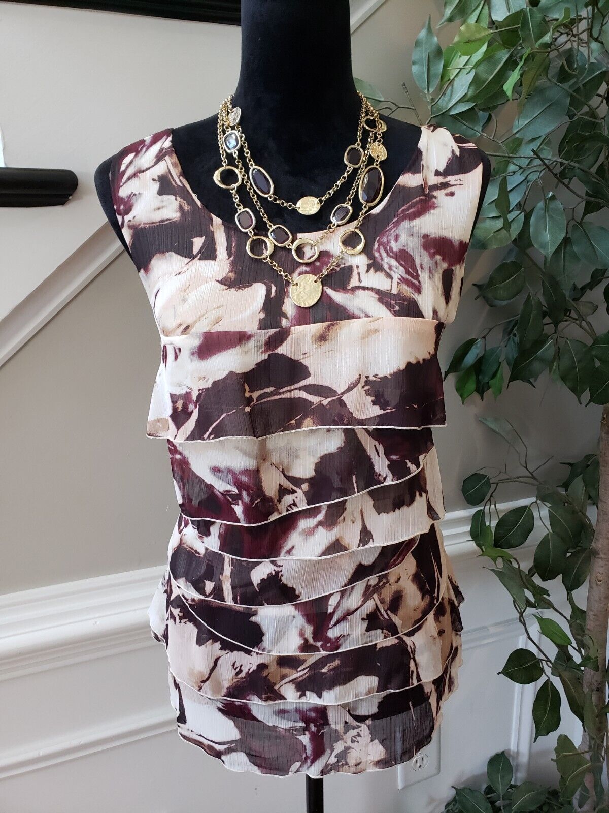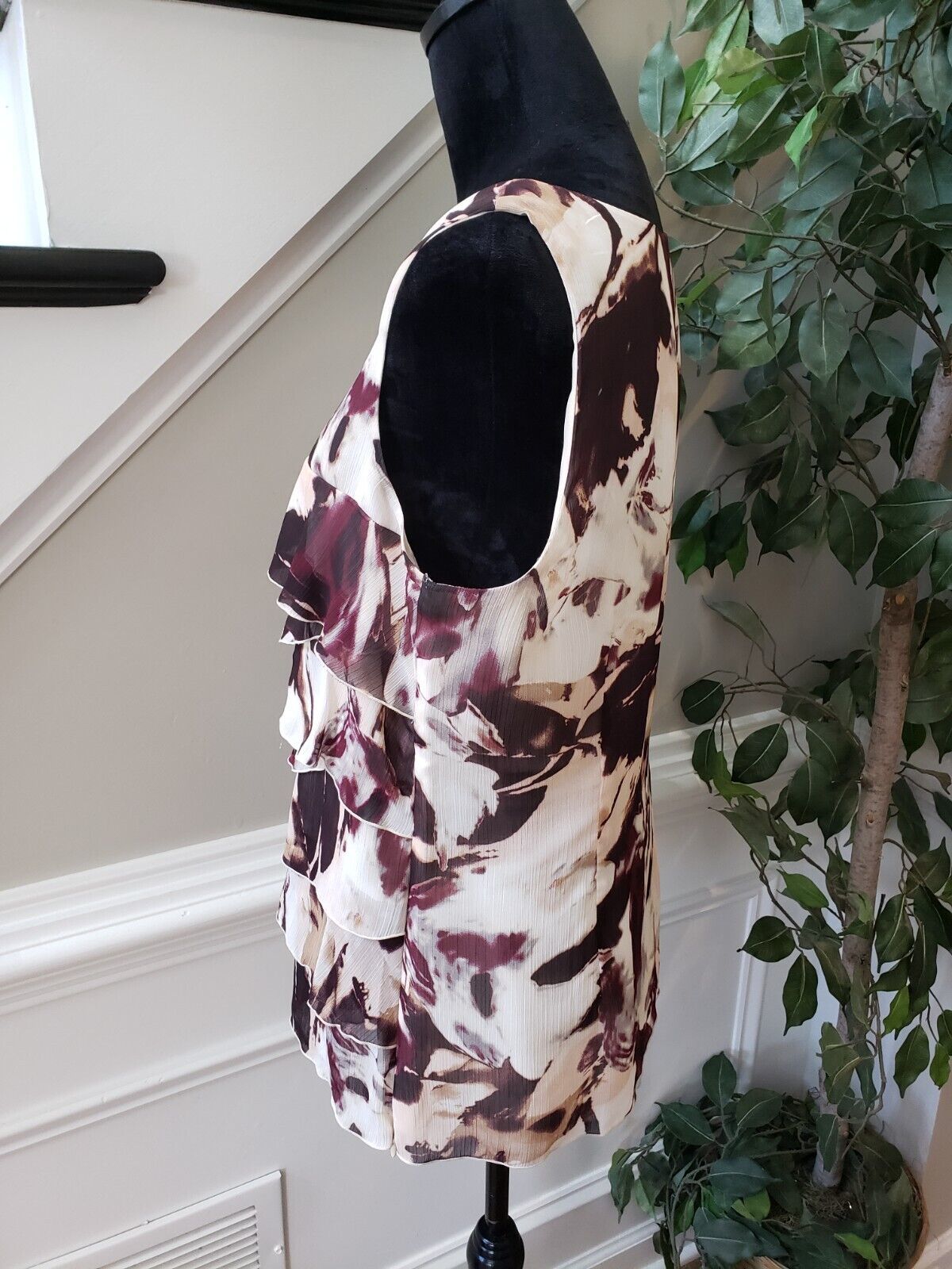 Ann Taylor Women's Multi Floral Ruffled 100% Polyester Sleeveless Top Blouse 12