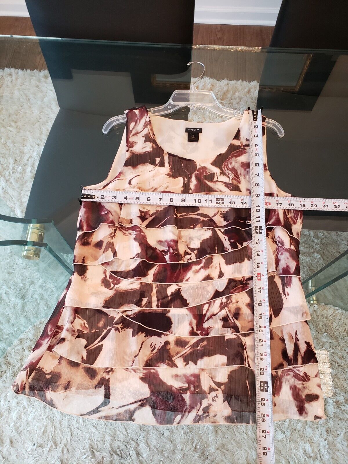 Ann Taylor Women's Multi Floral Ruffled 100% Polyester Sleeveless Top Blouse 12.