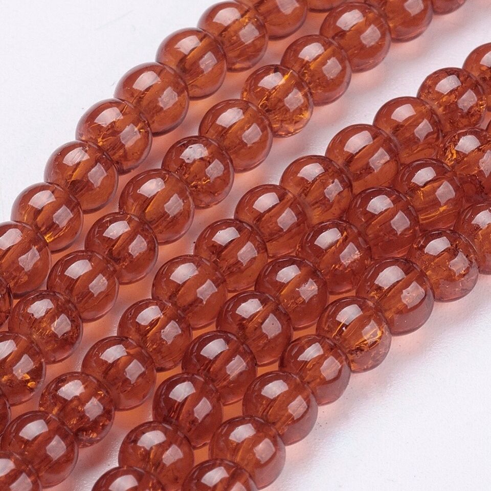 Z Bead Lot 5 strand 4mm round crackle glass 31 inch Dark Orange 765