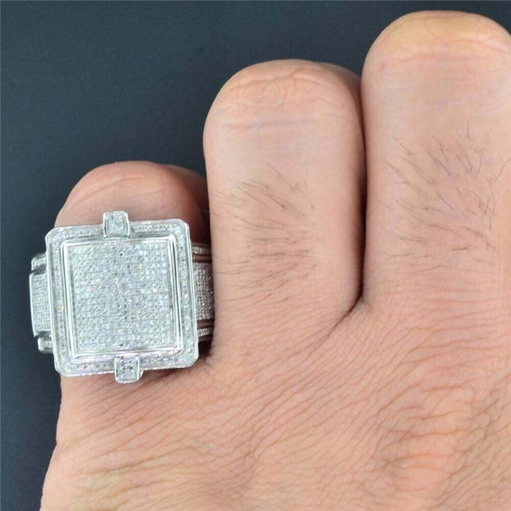0.90 ctw Brilliant Moissanite 14K White Gold Plated Pave Pinky Band Men's Ring