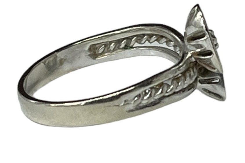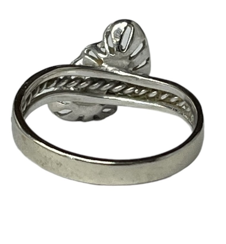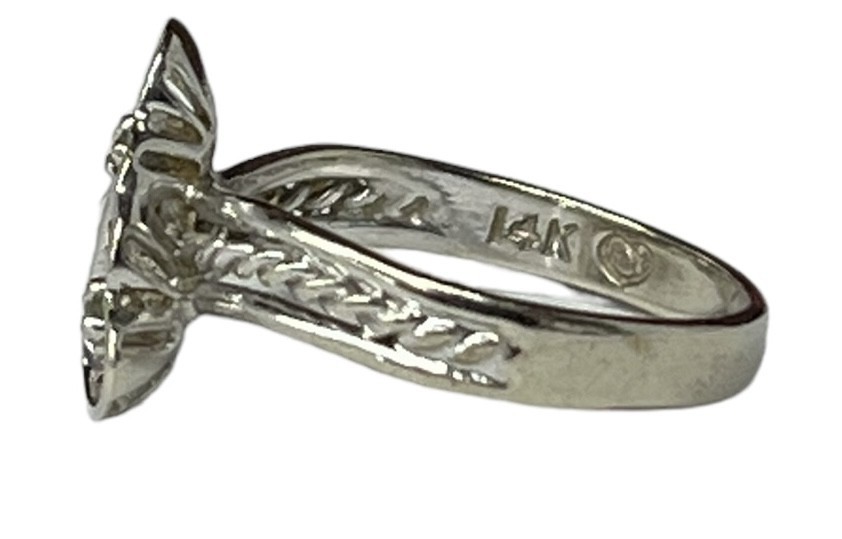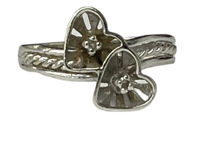 Type: Cluster ringWeight: 1.6Karat: 14ktMetal: White GoldGender: UnisexStyle: HeartSize / Length: 6.5Owner applied: 14KStone 1 quantity: 2Stone 1 shape: RoundStone 1 color: ClearStone 1 weight (total): 0.02Condition:Used