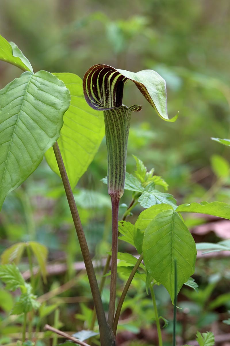 You are purchasing 20 Jack-In-The-Pulpit bulbs. This stemless plant grows to a height of 8 to 18 inches. It features one to two long-stalked, three-part leaves, and a unique flowering structure at the tip of its flower stalk, showcasing shades of green, greenish-white, and purple. The leaves and flower stalks emerge from an underground perennial bulb that is hard and turnip-shaped. The plant produces a cluster of bright red berries, each containing 1-5 seeds. Also known in the southern states as Indian Turnips. Planting instructions are included with each order.