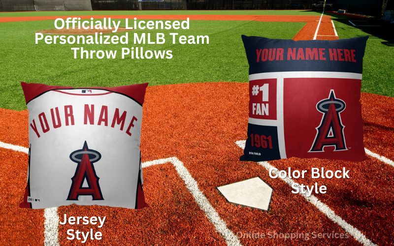 Los Angeles Angles Official MLB Jersey or Colorblock Personalized Throw Pillow