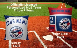 Toronto Blue Jays Official MLB Jersey or Colorblock Personalized Throw Pillow