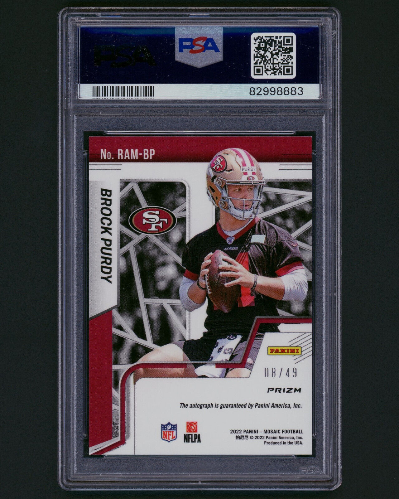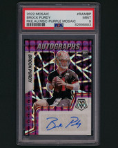 2022 Panini Mosaic Prizm Purple Brock Purdy Rookie Auto Card #8/49 PSA Mint 9