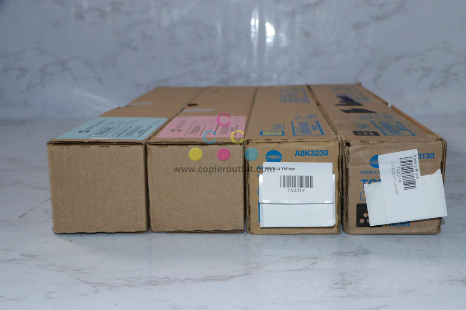 4 Cosmetic OEM Konica Minolta BizHub C227, C287 TN221AC,AM,Y,K Toner