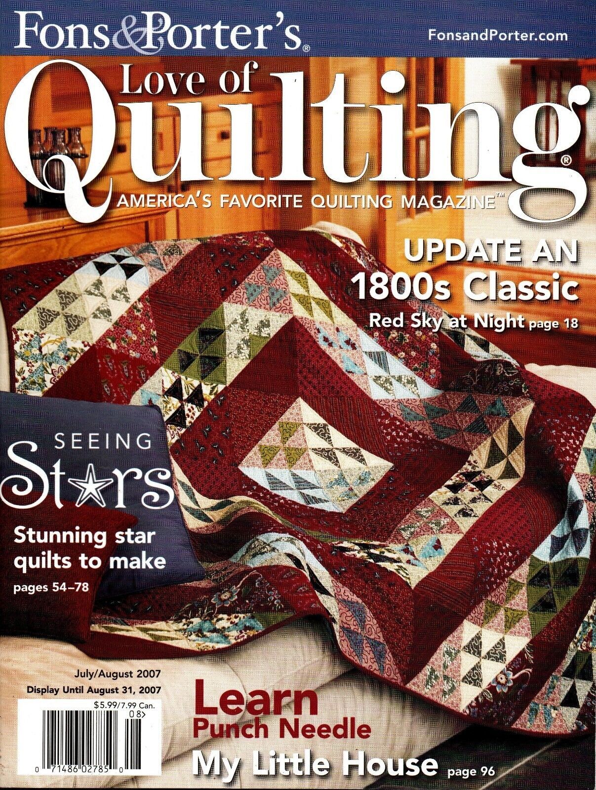 This is an original copy of Love of Quilting Magazine. This is the July/August 2007 issue. The cover has minor shelf wear. The pages are clean. There are no missing or torn pages.