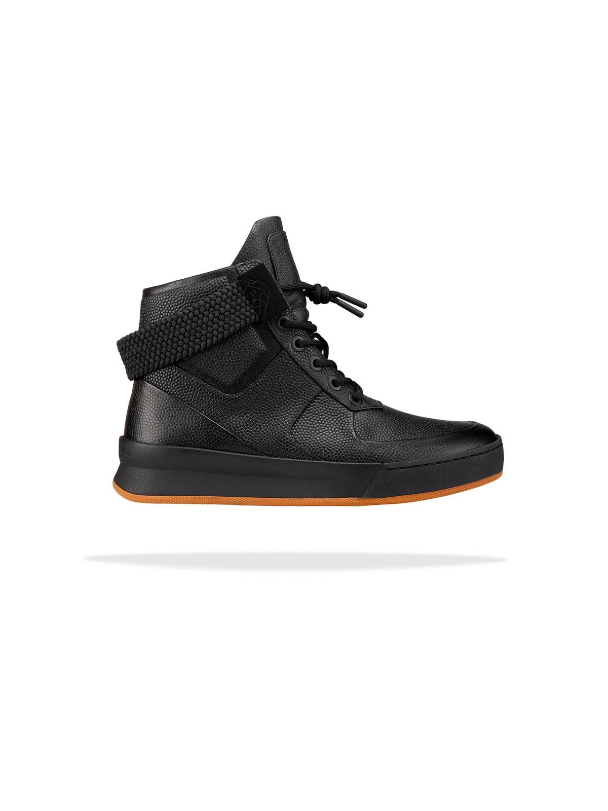 For the brave. Our inception shoe; the POAI MID, signifies all that is Magnus Alpha. Embodying the essence of diversity, breaking boundaries, and achieving goals; this sneaker is designed and manufactured to take you places in exceptional style. Delivering unmatched design along with hard-wearing comfort; each pair of this lightweight shoe boasts a 100% calfskin Caviar leather upper with hand painted edges, an incredibly soft 100% calfskin leather lining for legendary all-day wear, a rubber bottom sole made of custom foam composite, and signature Italian Braid Elastic attached to plated metal hardware. Every stitch and detail styled to perfection; a closer look reveals immaculate tongue labels, distinctive shoelace tips, and our Magnus Alpha symbol on the sole.