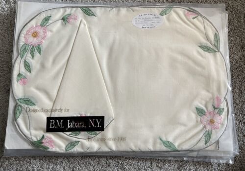 VTG BM Jabara Place Mat Set of 8 PC Embroidered Floral Creme 4 Napkins 4 Mats