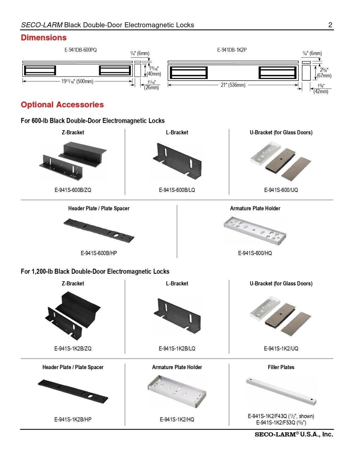 The E-941Dx series of electromagnetic locks is the ideal way to secure a door against unauthorized entry. When power is applied to the electromagnetic lock, it creates an extremely strong magnetic field. The electromagnet is strongly attracted to the steel armature plate which is mounted on the secured door. Once the electromagnet is deactivated, the secured door will function normally without any residual magnetism.