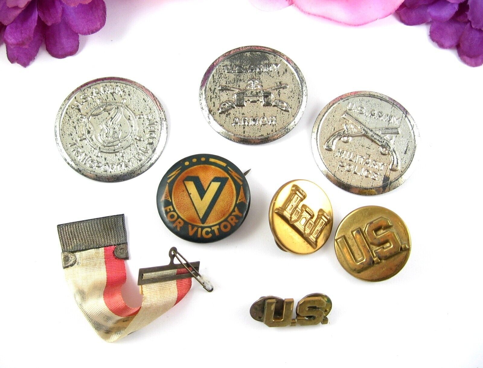 Lot of 8 Vintage ARMY MILITARY PINS Police Armor Transport Victory US Prana 1932