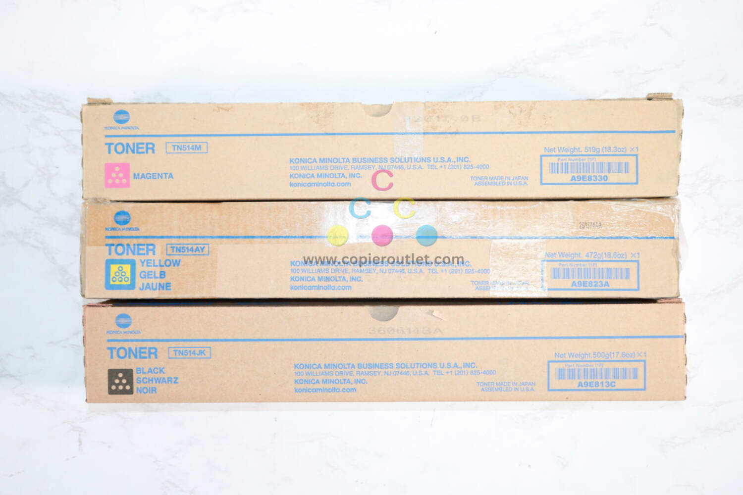 3 OEM Konica Minolta BizHub C458,C558,C658 MYJK Toners TN514M,TN514AY,TN514JK