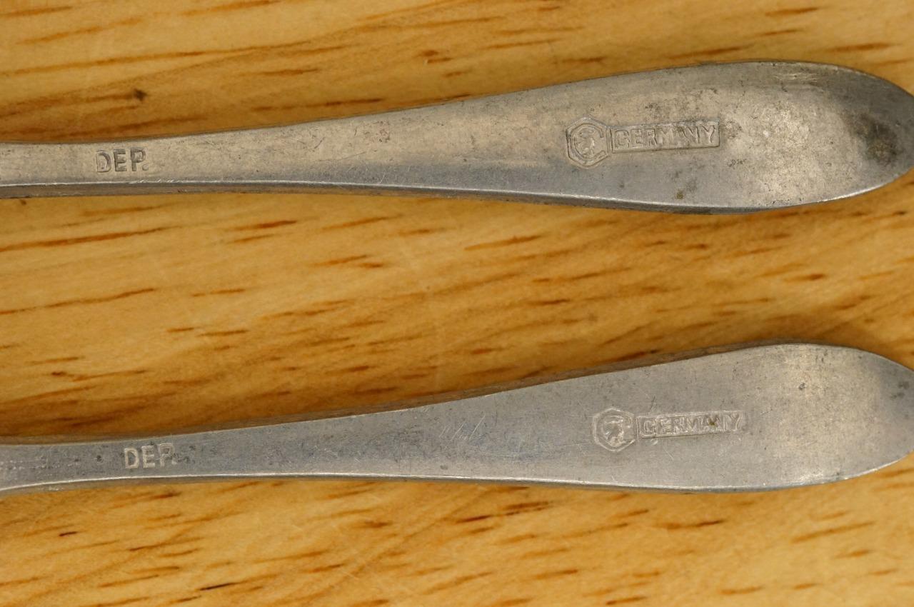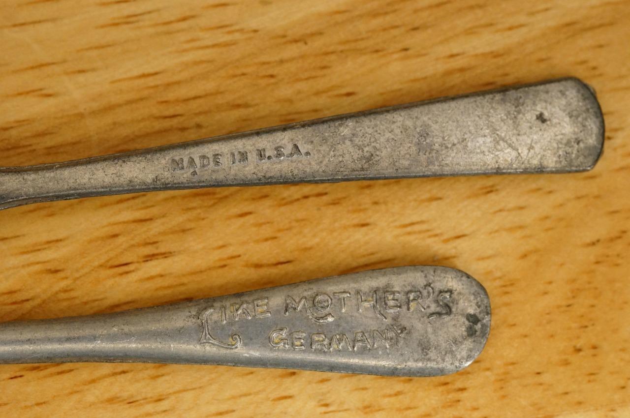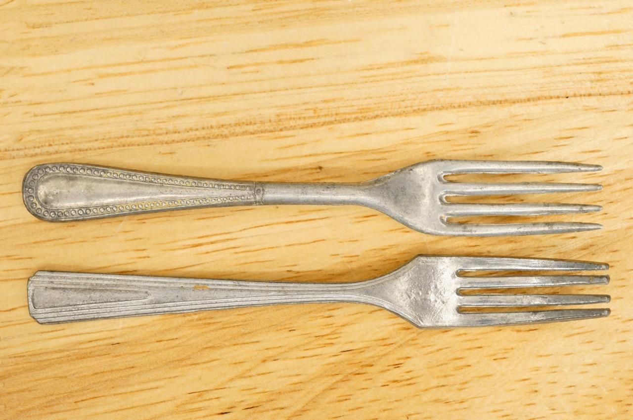 Vintage Metal Toy Lot USA Germany Childrens Play Flatware Forks Knives Spoons - 4-4.25" long. Molded.