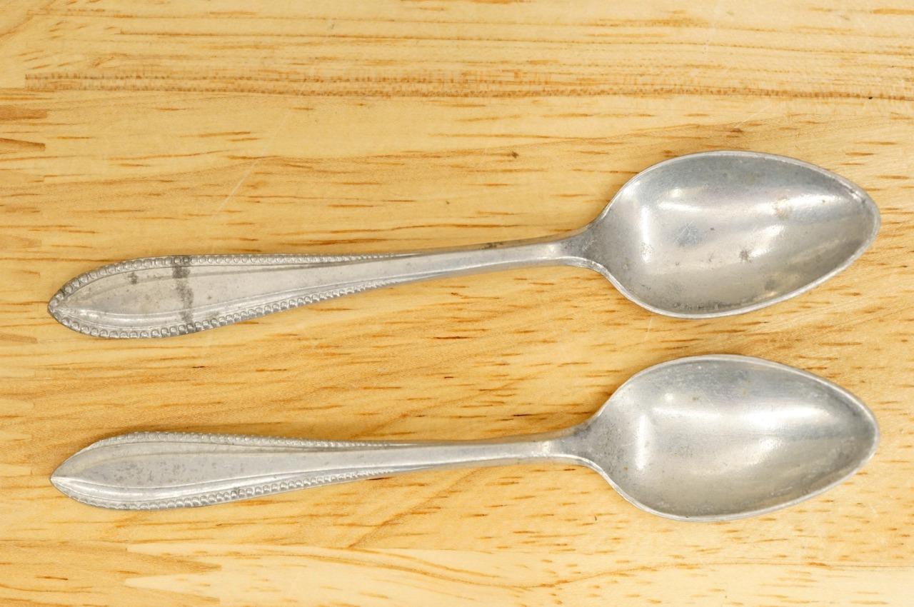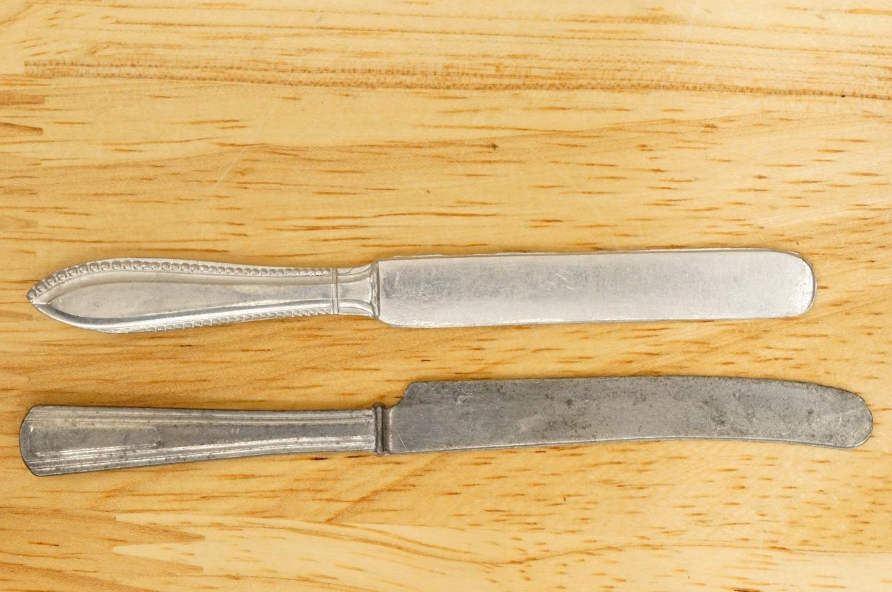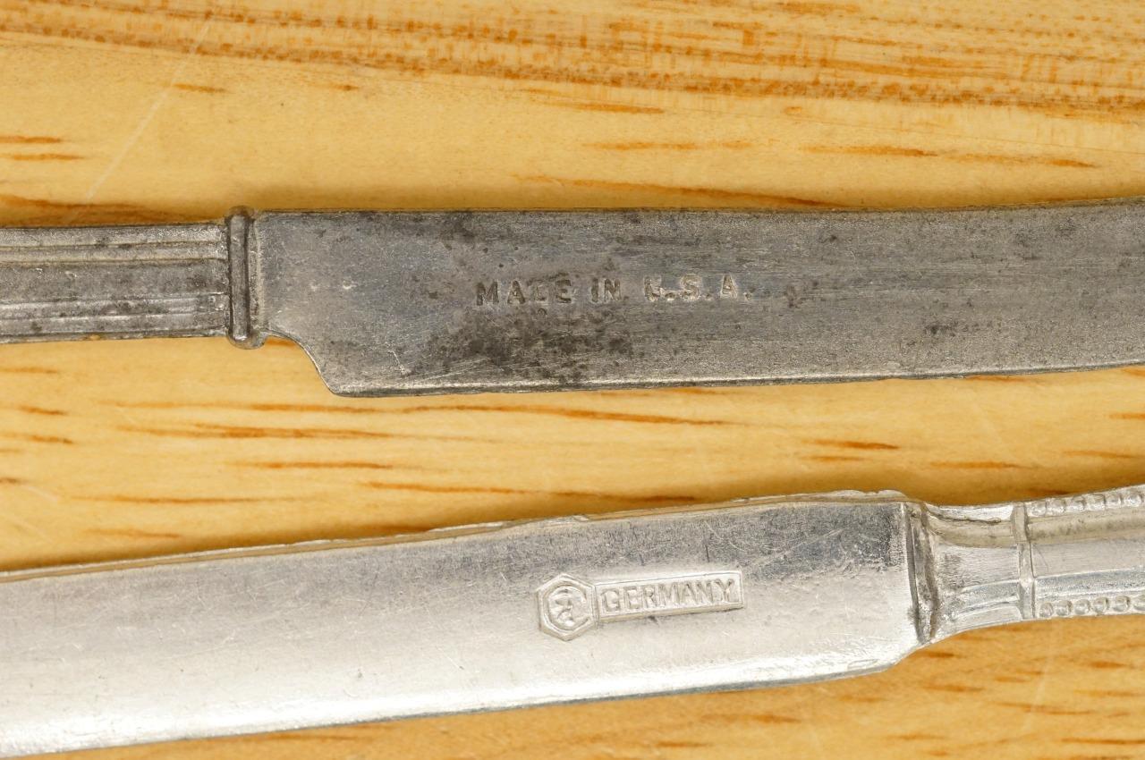 Vintage Metal Toy Lot USA Germany Childrens Play Flatware Forks Knives Spoons - 4-4.25" long. Molded.