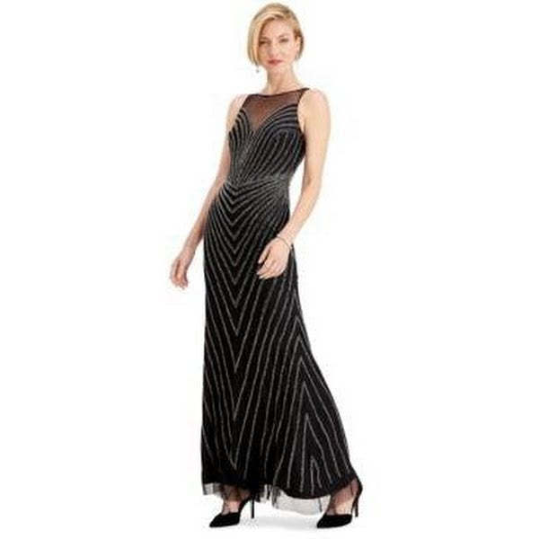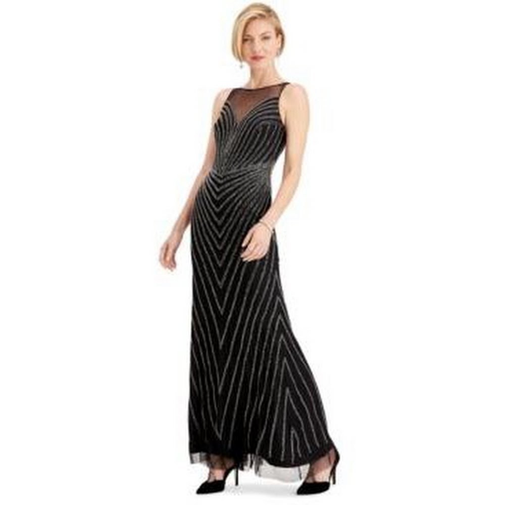 Adrianna Papell Beaded Illusion Mermaid Gown Women Womens Clothing - Dresses Illusion scoop neckline, plunging sweetheart at bust and back; Mermaid silhouette Hidden back zipper with hook-and-eye closure Beaded design throughout Shell lining: polyester Spot clean Imported