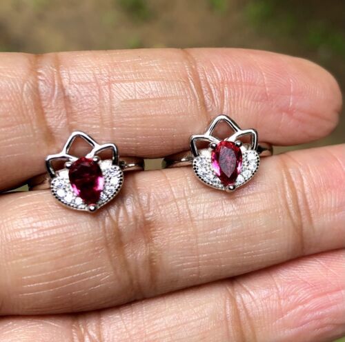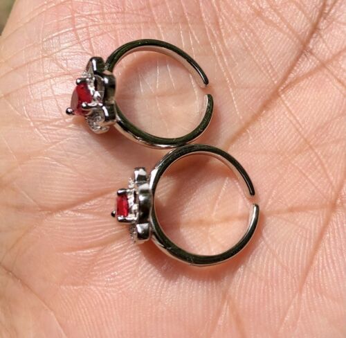 2 pezzi anelli in argento sterling 925 + punta zirconi regolabili, lucidatura...