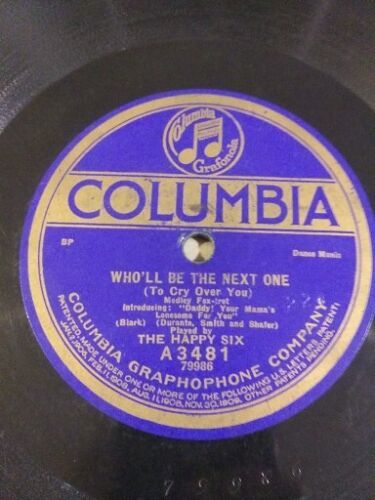 This rare vintage record from The Columbians is a must-have for all jazz and musical enthusiasts. Featuring the iconic band The Happy Six, this 10-inch single from Columbia Records, with the catalog number #3481, has a delightful melody named "Who'll Be the Next One". The record is in great working condition and plays at 78 RPM, perfect for avid collectors of vinyl records.