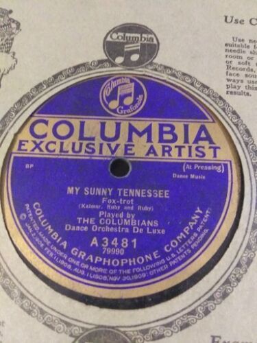 The Columbians 78rpm Single 10-inch Columbia Records # 3481 My Sunny Tennessee