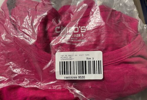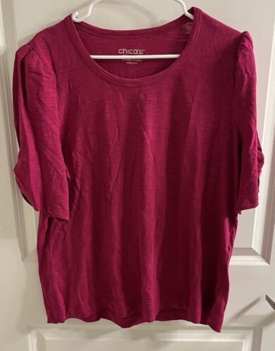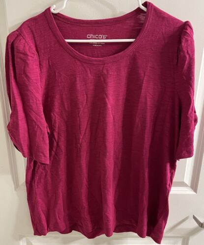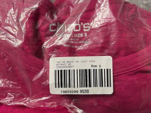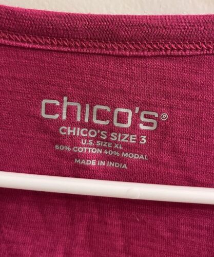 Chico's Women's Magenta Pink Cotton Blend Knit Basic T-Shirt XL Size 3 Botanic