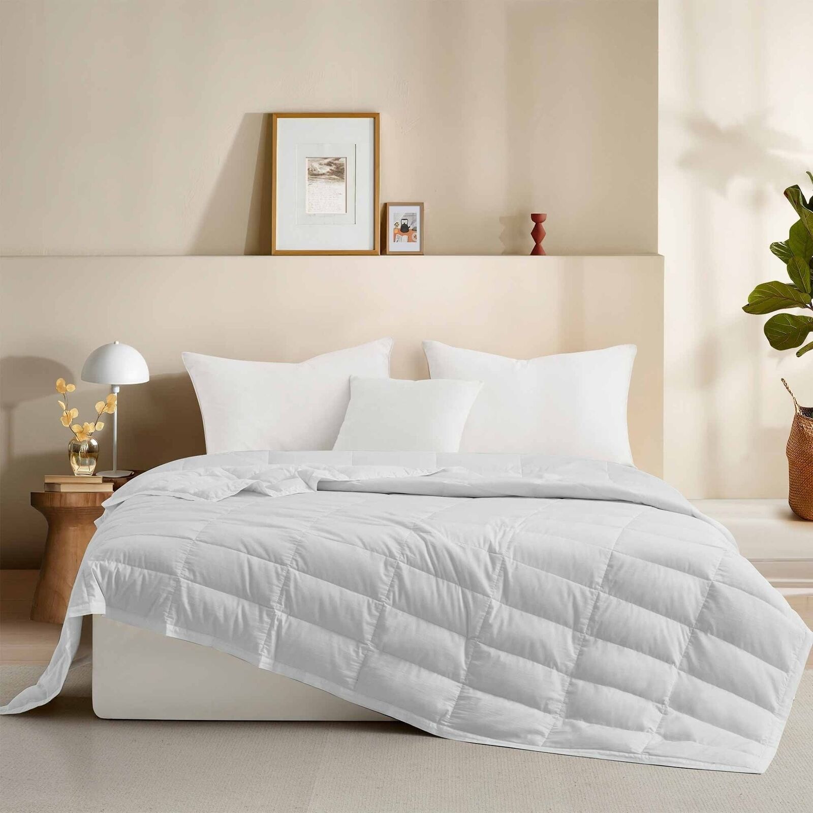Unikome Oversize Lightweight White Down Blanket with Satin Trim, Full - White