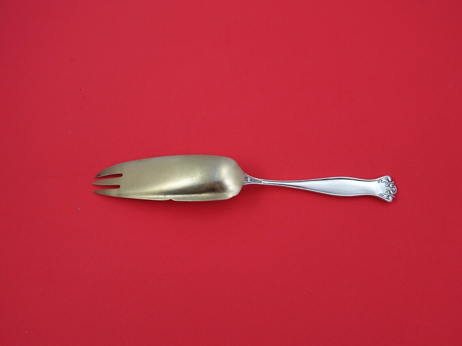 Cambridge by Towle sterling silver Cake Serving Fork, gold washed brite-cut flowers on blade 7 5/8". It is not monogramed and is in excellent condition.