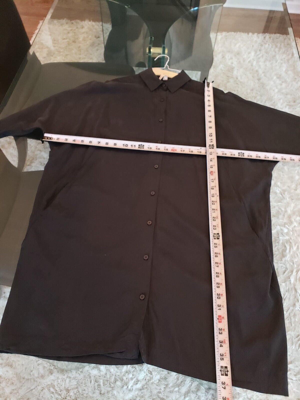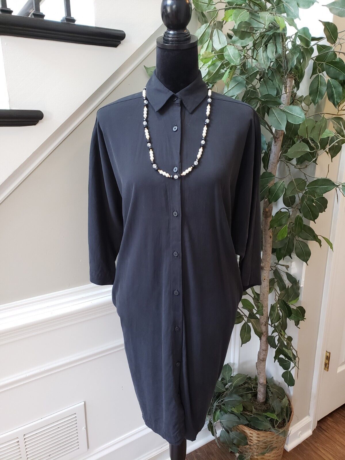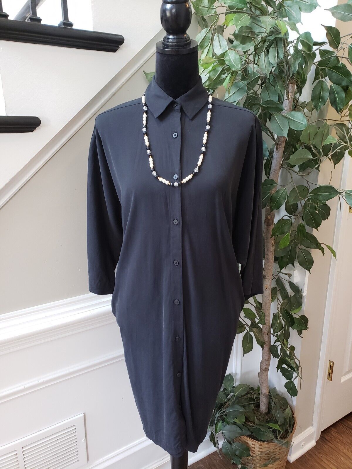 Lululemon Women's Black Solid Cupro Collar Button Down 3/4 Sleeve Shirt Dress 6.