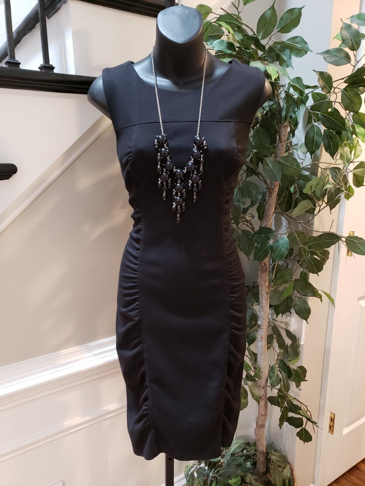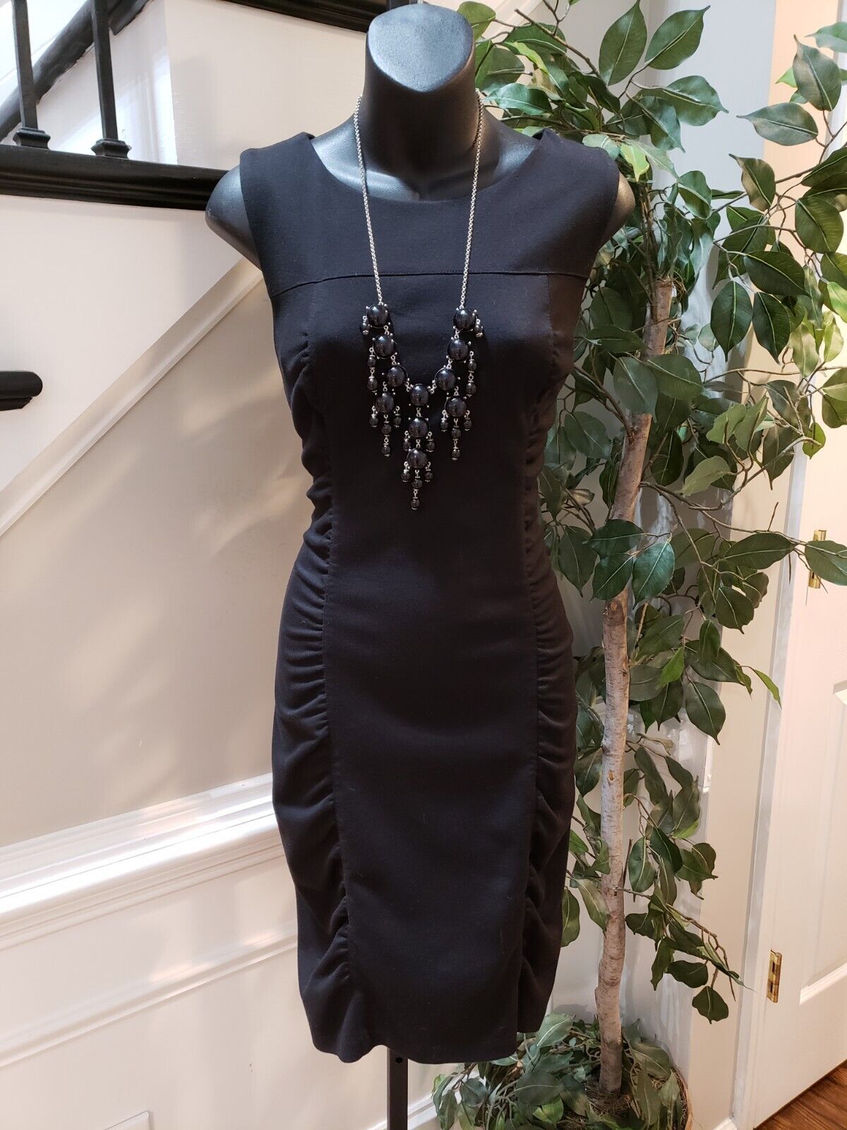 AGB Women's Black Polyester Round Neck Sleeveless Bodycon Knee Length Dress 8.