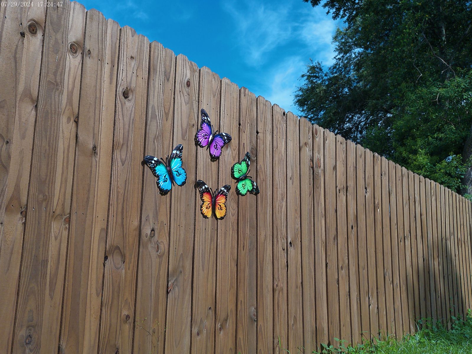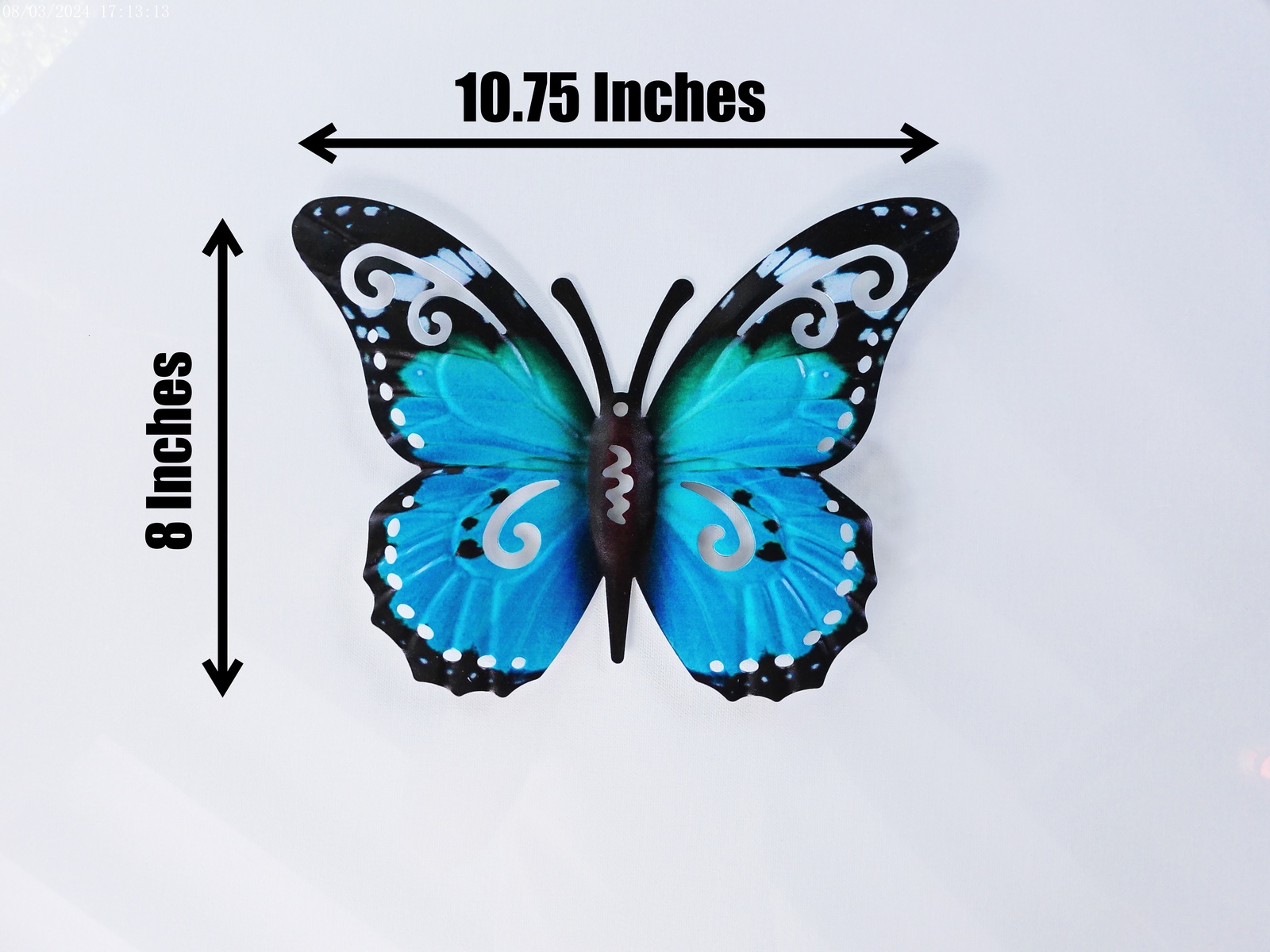 A set of 4 Vibrant and Beautiful Classic Butterfly Metal Wall Art/Decor. Sure to bring warmth and a splash of color too your living space, inside or outside. Looks great in a Living room, Kitchen, Sunroom, Patio, Porch, Pool area, Garden, Fence or Back Yard. Lightweight and easy to hang. Makes a Wonderful gift.