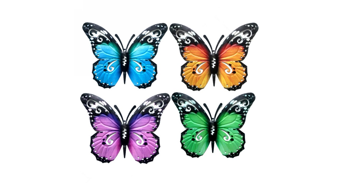 Sunny Barrel Set of 4 Classic Butterfly Metal Wall Art. Indoor or Outdoor Decor.