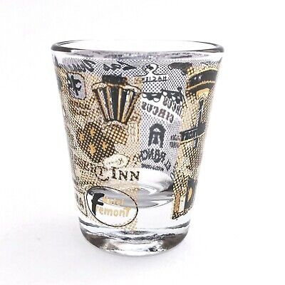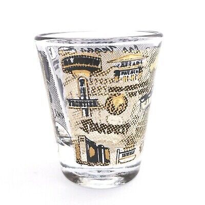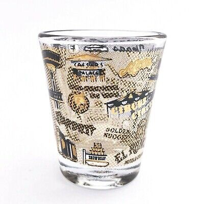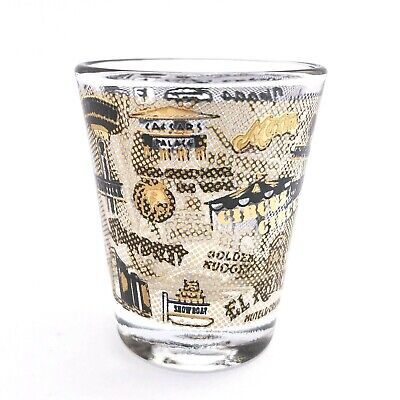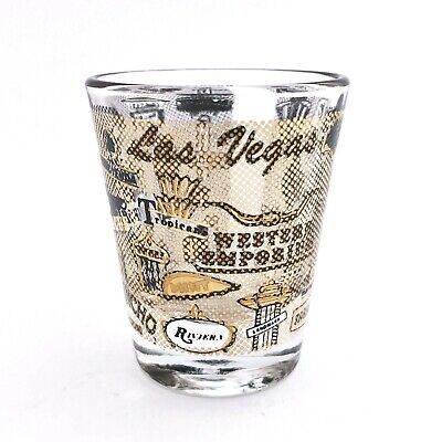 Vintage Las Vegas Shot Glass 22 Hotels Casinos Black and Gold Trim