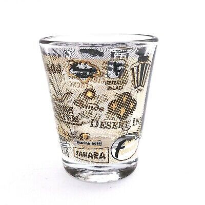 Vintage Las Vegas Souvenir Shot Glass 23 Hotels Featured Black and Gold Trim