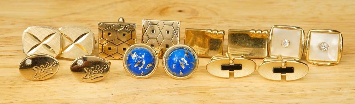 Vintage Mens Jewelry Dealer Estate Lot Cuff Links MCM Gold Tone Metal 1960-70s. Good to VG condition. Variety of makers. No smoke or pet odor.