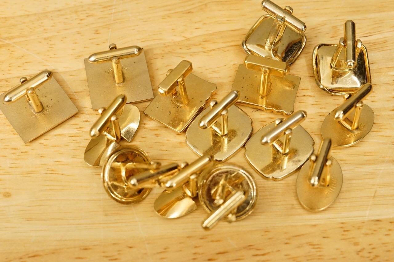 Vintage Mens Jewelry Dealer Estate Lot Cuff Links MCM Gold Tone Metal 1960-70s