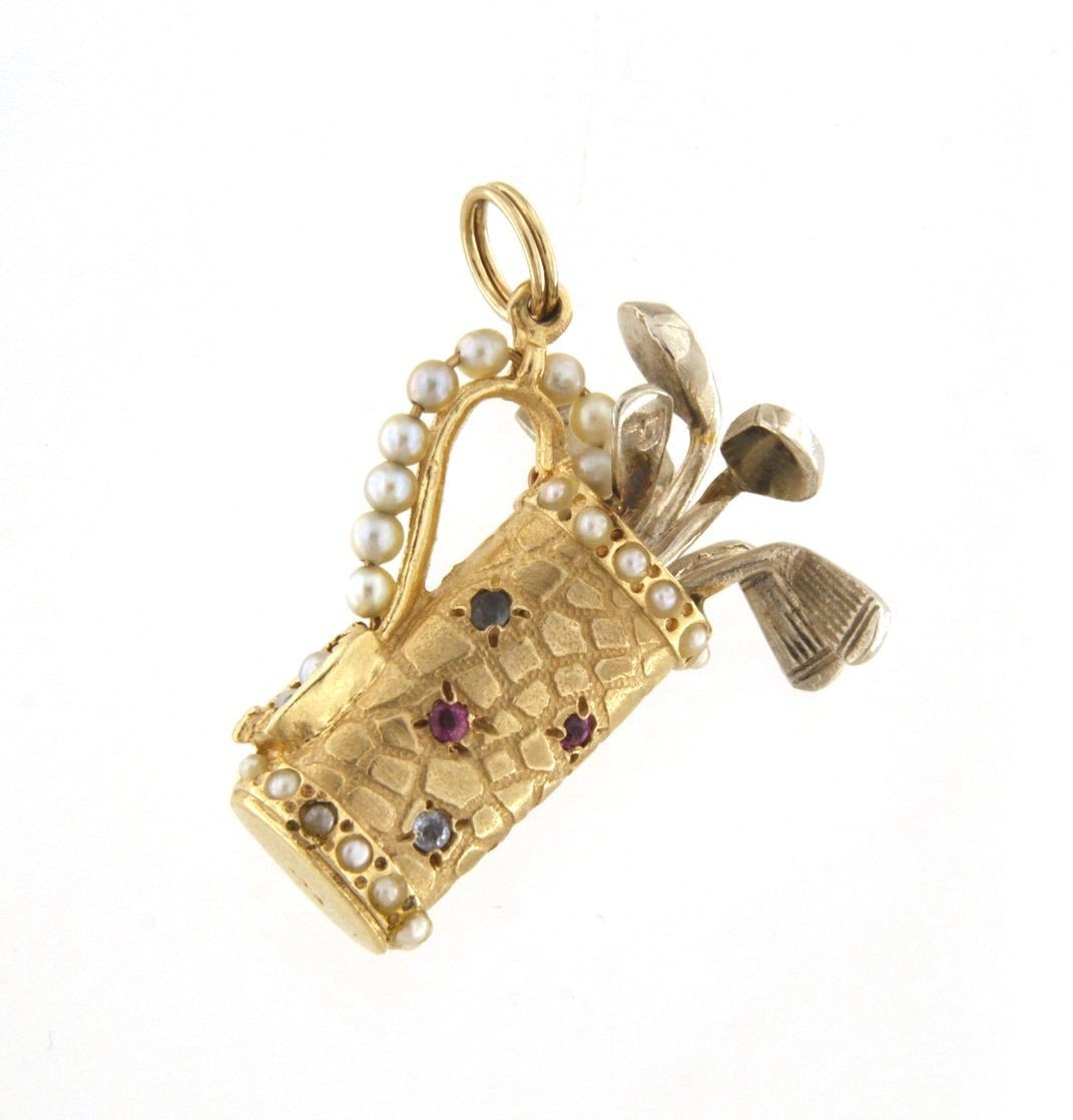 Type: CharmWeight: 7.1Karat: 14ktMetal: Yellow and White GoldGender: UnisexStyle: FancyBrand: Golf ClubsSize / Length: 1.5"Owner applied: 14kStone 1 quantity: 9Stone 1 shape: RoundStone 1 color: MultiStone 1 weight (total): .25Stone 2 Quantity: 34Stone 2 Shape: RoundStone 2 Color: WhiteStone 2 Type: PearlCondition:Used