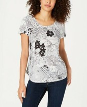 Style Co delivers a wardrobe basic that is never boring with this floral-print top. Its two-tone print keeps it positively timeless. Approx. model height is 510 and she is wearing size small Relaxed fit; hits at hip; approx. 27 long Due to generous sizing, we suggest sizing down for the perfect fit Scoop neckline Color shading and fabric imperfections are inherent to the printing process, making each piece unique Polyester Machine washable Imported